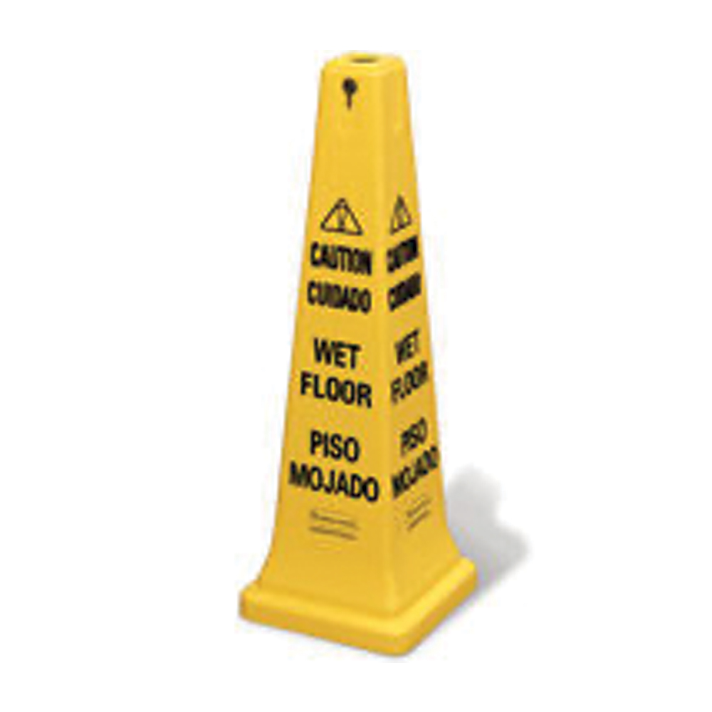 Highly visible, bright yellow hazard protection system. Four-sided shape allows for efficient stacking. Multi-lingual warning messages and ANSI symbols for effective communication for broad audiences.