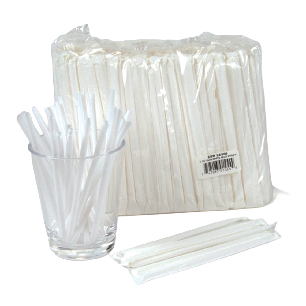 Straws and stirrers are available both unwrapped and wrapped in either plastic or paper. The stirrers and slim Collins straws are great for coffee or mixing drinks. The jumbo straws are perfect for drinking soda, iced tea, shakes, and other beverages, while the giant straws are extra wide making it easy to drink a milkshake, smoothie, or slushy.