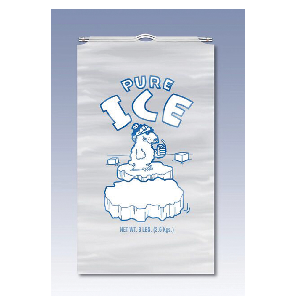 These plastic ice bags are pre-printed and the large opening makes packaging ice cubes easy.