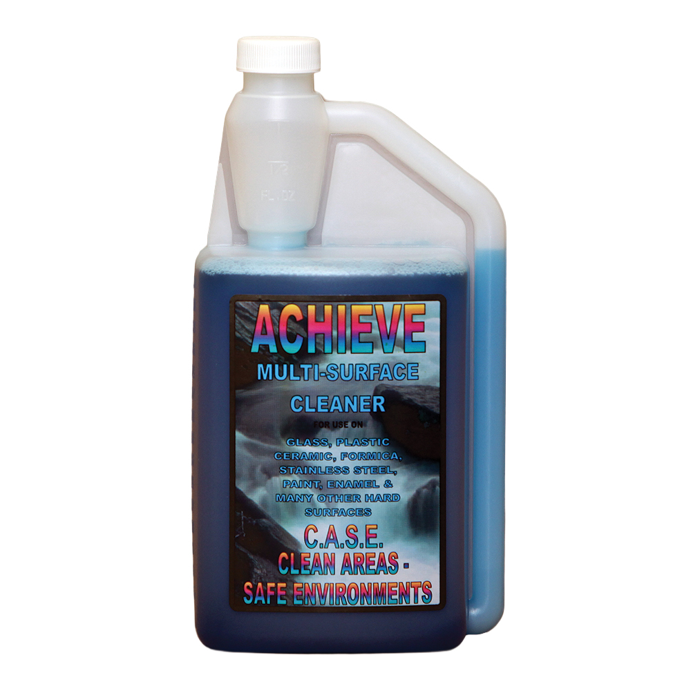 ACHIEVE is the ultimate multi-surface cleaner. It uses the latest surfactant technology to clean almost any hard surface without streaking or leaving residue behind.