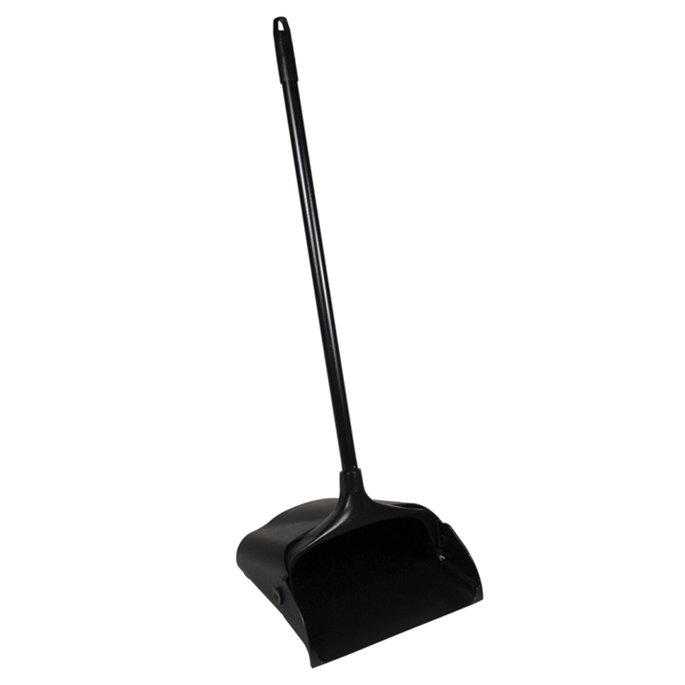 This dust pan has a long handle, enabling you to easily sweep small messes into the dust pan, while standing in an upright position.