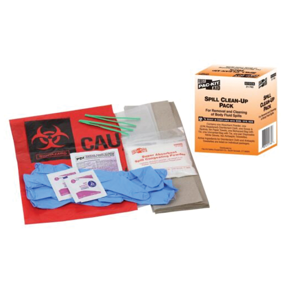 This all-in-one blood borne pathogen spill clean up pack provides a variety of cleaning products and disposable equipment to safely and easily clean up contagious bodily fluids such as vomit or blood. This pack helps to minimize exposure to dangerous substances