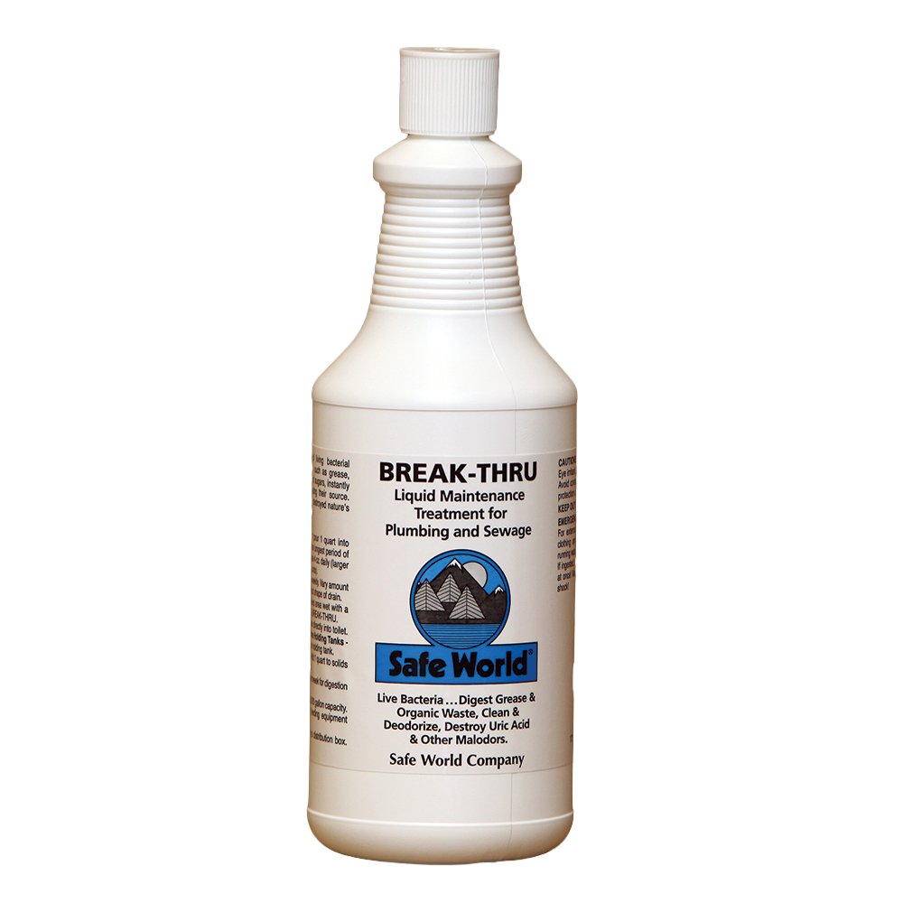 Enzyme/bacteria odor eliminator and maintenance treatment. Break Thru destroys organic wastes by using its enzymes to break organic particles into smaller pieces, allowing its bacteria to convert them to harmless gasses. It destroys odors at their source and is USDA approved.