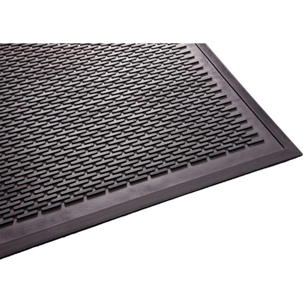 50% recycled material. Protect your flooring by cleaning dirt and moisture from shoes before it enters your building. Traps moisture and debris below walking surface, which helps prevent slips and falls. All-rubber construction for maximum durability. Textured backing keeps mat in place. Beveled edges for additional safety