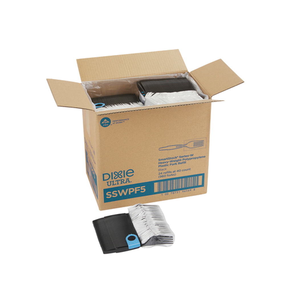 Dixie Ultra® Smartstock® Series-W Heavy-Weight Polypropylene Plastic Wrapped Fork Refill by GP Pro, Black Additional Details