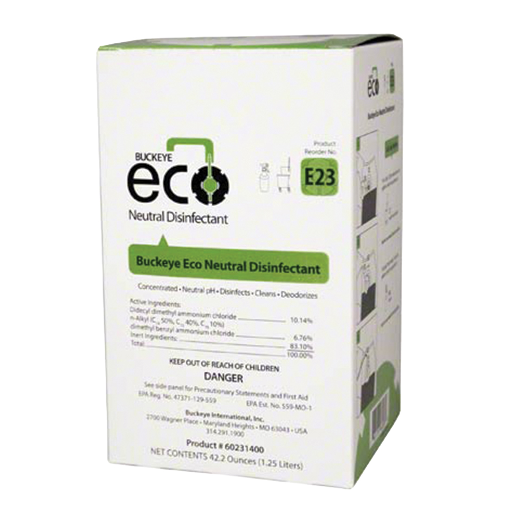 Multi-purpose, neutral pH, broad-spectrum germicidal detergent. Ideal for routine germicidal cleaning and floor care maintenance. With a use-diution pH of 7.0 ? 0.2, Buckeye Eco Neutral Disinfectant will not attack floor finish.