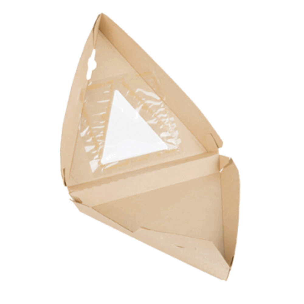 Easily serve up slices of pizza with this corrugated clamshell pizza container with viewfinder. Great for your grab and go restaurant, convenience store, food truck or deli, this versatile container offers an eco-friendly way to box up to-go pizza as big as 16″ slices. You can easily add more than one slice to this box by stacking 6 or more pieces on top of each other. This product features crush strength durability to protect your fresh food.