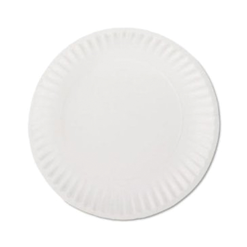 White uncoated paper plate. Made from 100% paper; a renewable natural resource. Microwave safe.