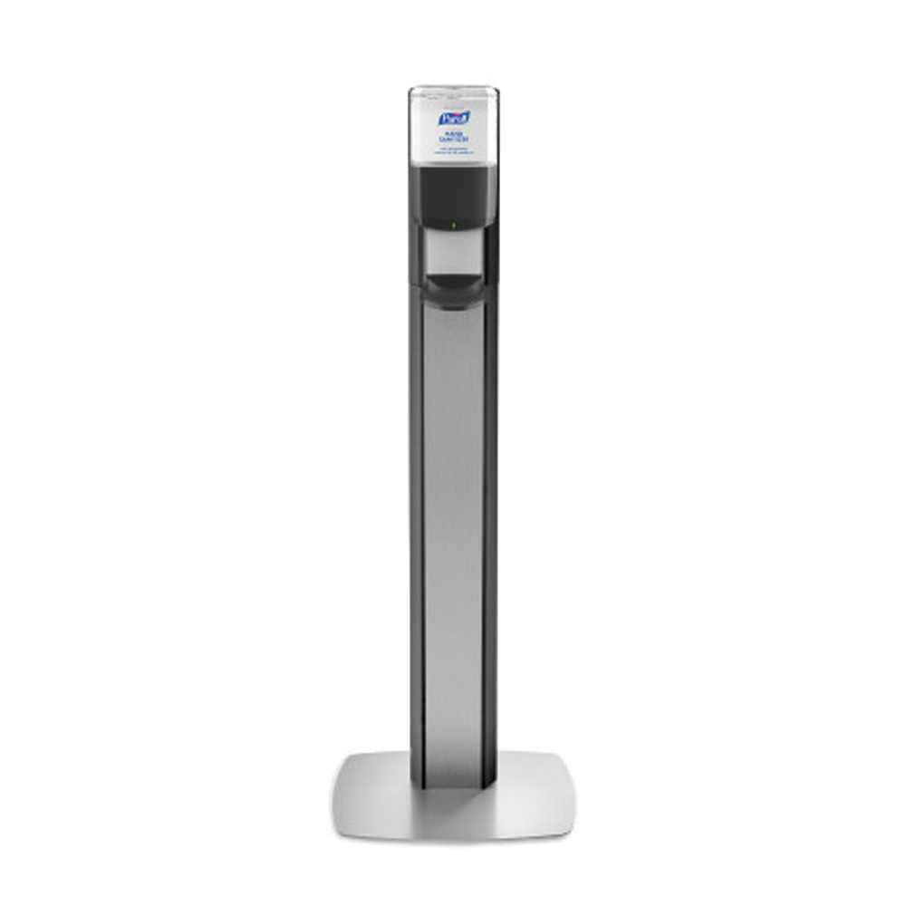 Elegant stand makes PURELL Hand Sanitizer available anywhere. Includes PURELL® ES6 Hand Sanitizer Dispenser – Graphite. Low profile baseplate designed to maximize stability. Lightweight and easily moved when cleaning the facility. Silver baseplate hides dirt and always looks good. Uses PURELL® ES6 1200mL Hand Sanitizer refills