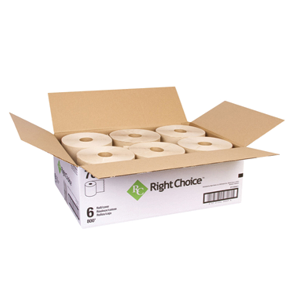 Right Choice? 800? Hardwound Roll Towels feature great value and performance. Meets EPA guidelines for recycled fiber content. High capacity rolls minimize run outs and reduce maintenance costs. Embossing enhances better hand feel and improves absorbency. Popular in high traffic education, industrial and foodservice market