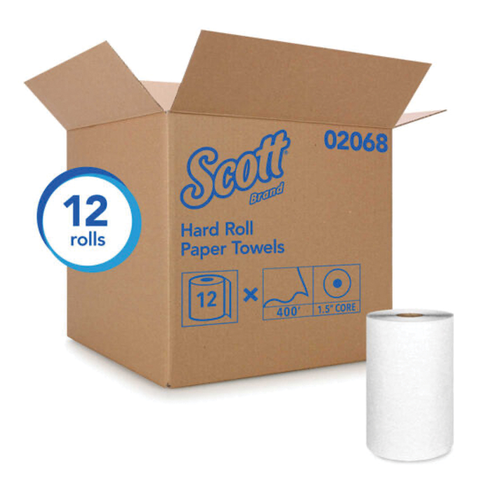 Scott Essential provides reliable balance of efficiency, performance and value. If you’re looking for high-capacity commercial paper towels compatible with most universal roll paper towel dispensers, the Scott Essential Hard Roll Paper Towels are an excellent choice for your business. The roll has a core size of 1.5″ and is compatible with a variety of Kimberly-Clark Professional dispensers and many universal towel dispensers.