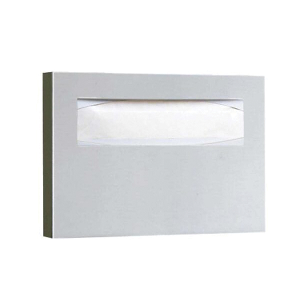 Satin-finish stainless steel. Dispenses 250 single- or half-fold toilet seat covers or one box. Fills from bottom.