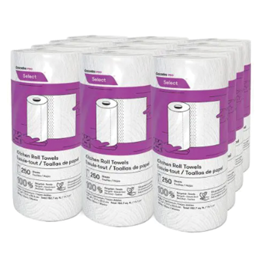 Jumbo 2-Ply Kitchen Roll Towels have more sheets per roll, making them practical for avoiding run-outs and cleaning up big messes. Made from 100% recycled fibre and at least 50% post-consumer material, these towels will allow you to thoroughly clean everything in an environmentally friendly way. These paper towels exceed EPA standards. Ideal for cleaning and wiping down surfaces in foodservice establishments, kitchens, classrooms and cafeterias.